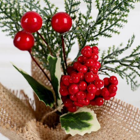 Новогодняя композиция на стол «Зимнее волшебство. Очарование», в мешочке, 17 см. Эта новогодняя композиция на стол выполнена из пластика и текстиля в ярком красном цвете и представляет собой праздничный аксессуар высотой 17 см. Ее стиль сочетает элементы новогоднего барокко и скандинавского дизайна, создавая элегантную атмосферу зимнего волшебства и очарования. Такой декор станет центральным украшением праздничного стола, добавляя тепла и уюта в интерьер во время новогодних праздников. Особенности <ul> <li> Высота – 17 см, идеально подходит для украшения праздничных столов и сервировки.</li> <li> Цвет – насыщенный красный, символизирующий радость, тепло и энергию Нового года.</li> <li> Материалы – пластик и текстиль обеспечивают легкость, долговечность и реалистичный внешний вид.</li> <li> Тематика – новогоднее волшебство с акцентом на зимнюю сказку и праздничное настроение.</li> <li> Стиль – гармоничное сочетание элементов барокко и скандинавского минимализма делает композицию универсальной для различных интерьеров.</li> </ul> Преимущества использования <ul> <li> Может служить центральным украшением праздничного стола или частью общей декорации комнаты.</li> <li> Добавляет атмосферу уюта, волшебства и торжества в любой интерьер.</li> <li> Легко сочетается с другими новогодними украшениями: свечами, гирляндами, снежинками и елочными игрушками.</li> </ul> Эта композиция станет ярким акцентом в оформлении новогоднего праздника. Ее насыщенный красный цвет и изящный дизайн создают ощущение зимней сказки и праздничного настроения. Простая в использовании, она поможет оформить стол к Новому году с элегантностью и теплом, делая ваш праздник незабываемым для всей семьи.