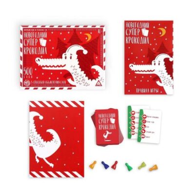 Новогодняя настольная игра «Новый год: Суперкрокодил», 100 карт, 10+. <b> Настольная игра на объяснение слов</b> Не знаете, чем развлечь всю семью в Новый год и зимние каникулы? Тогда эта игра — именно то, что вам нужно! Здесь участникам предстоит объяснять слова разными способами: рисунками, словами, с помощью песен и пантомимы. А это отличная возможность показать свои артистические и творческие способности! Только поспешите, ведь песочные часы ждать не будут… <b> Подождите, а зачем здесь игровое поле?</b> Перед началом игры вам нужно разделиться на группы по 2–3 человека, выбрать фишку и поставить ее на старт. Далее участник первой команды вытягивает верхнюю карточку из колоды, выбирает одно слово из пяти предложенных и объясняет его за время, ограниченное песочными часами. Если участники успевают отгадать, их фишка передвигается вперед на столько клеток, сколько указано на карте. То есть если игроки отгадали слово, которое на карте стоит под номером 5, значит, их фишка двигается на 5 ходов. А карточка уходит в колоду сброса. <b> Окончание игры и победа</b> Как только фишка одной из команд оказалась на клетке «Финиш», игра заканчивается. Эта команда объявляется победителем! <b> Внутри вы найдете:</b> <ul> <li> игровое поле,</li> <li> 100 карт,</li> <li> 6 фишек игроков,</li> <li> песочные часы,</li> <li> правила игры.</li> </ul> <b> Встречайте Новый год вместе с ЛАС ИГРАС!</b>