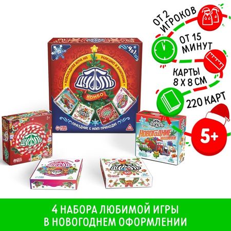 Новогодняя настольная игра «Новый год: Дуббль КОМБО. Праздник к нам приходит», 4 в 1, 5+