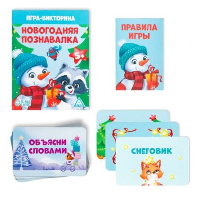 Новогодняя настольная игра-викторина «Новый год: Познавалка», 55 карт, 5+. <b> Игра-викторина для всей семьи</b> Эта игра поможет весело встретить самый волшебный праздник, а еще узнать много нового и интересного. Внутри вас ждет 3 вида заданий: вопросы зимней викторины, объяснение предметов с помощью мимики и жестов, а также задачки на поиск букв и составление слов. Играйте и развивайте кругозор, логику, смекалку и артистические навыки! <b> Как играть?</b> По очереди выбирайте, из какой колоды вы будете вытягивать карточки. <ol> <li> В карточках «Отгадай, что это?» вас ждет вопрос и варианты ответа. Ваша задача — вслух зачитать вопрос и ответить на него.<ul> <li> Если участник дал правильный ответ, то он забирает карточку себе.</li> <li> Если игрок ошибся, карточка отправляется в отдельную колоду сброса.</li> </ul> </li> <li> В карточках «Объясни жестами» написано слово или словосочетание, которое нужно объяснить с помощью мимики и жестов. При этом нельзя указывать на предметы, писать или рисовать в воздухе.<ul> <li> Если остальные участники отгадали, игрок забирает эту карточку себе и откладывает рядом с собой до подсчета в конце игры.</li> <li> Если участники не смогли догадаться, то игрок зачитывает правильный ответ, а карта уходит в сброс.</li> </ul> </li> <li> В карточках «Найди и собери» задача участника — найти на карточке все спрятанные буквы, выписать их на листок и собрать из них слово. Собранное слово нужно обязательно озвучить всем игрокам!<ul> <li> Если участник дал правильный ответ, он забирает эту карточку себе и откладывает рядом с собой до подсчета в конце игры.</li> <li> Если игрок ошибся, карточка отправляется в отдельную колоду сброса.</li> </ul> </li> </ol> Играйте до тех пор, пока во всех колодах не закончатся карточки. После этого каждый участник подсчитывает карточки, собранные в течение игры. Победит тот, у кого их больше всех! <b> Внутри вы найдете</b> <ul> <li> 55 карт.</li> <li> Правила игры.</li> </ul> <b> Встречайте Новый год вместе с ЛАС ИГРАС!</b>