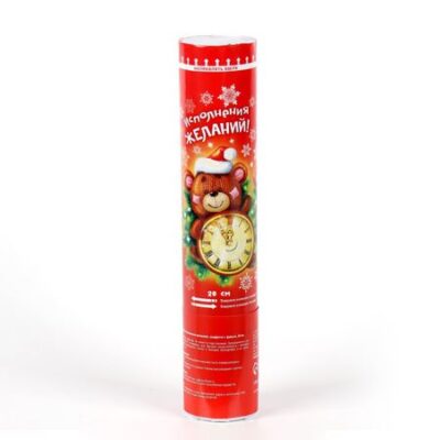 Новогодняя пневмохлопушка поворотная «Исполнения желаний», конфетти, фольга, 20 см. Зажгите самую сказочную ночь года заводным весельем и превратите ее в настоящее волшебство с помощью пневмохлопушки! Устроить незабываемую вечеринку и встретить бой курантов яркими фейерверками поможет новогодняя пневмохлопушка поворотная «Исполнения желаний», конфетти, фольга, 20 см. Атрибут с авторским новогодним принтом станет вашим маленьким помощником в создании праздника. Удивите друзей и родных разноцветным взрывом радости в виде серпантина и конфетти! Хлопушка приводится в действие при повороте специально обозначенной части за счет сжатого воздуха и абсолютно безопасна в эксплуатации. Подходит для применения в помещении и на улице. С инструкцией можно ознакомиться на упаковке.