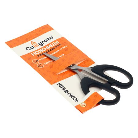 Ножницы канцелярские, 12 см, «Офис», пластиковые ручки, европодвес. <ul> <b> Ножницы для работы бумагой и картоном.</b> </ul> <li> Изготовлены из нержавеющей стали.</li> <li> Ручки — пластик с резиновыми вставками анатомической формы предотвращают скольжение пальцев.</li> <li> Имеют острые лезвия, что снижает нагрузку на руку.</li> <li> Благодаря продуманной форме ручек они удобны как для рукоделия, так и для творчества.</li> <li> Незаменимые универсальные ножницы для офиса и для дома.</li> <b> Могут встречаться заломы на подложке, при сгибании плотного картона с нанесением, такие заломы неизбежность</b> <b> Внимание! Могут встречаться заломы на подложке, при сгибании плотного картона с нанесением, такие заломы неизбежность транспортировки</b>
