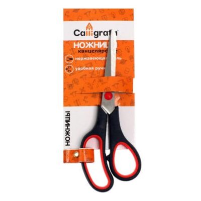 Ножницы канцелярские 19 см, ручки пластиковые с резиновыми вставками. <ul> <b> Ножницы для работы бумагой и картоном.</b> </ul> <li> Изготовлены из нержавеющей стали.</li> <li> Ручки — пластик с резиновыми вставками анатомической формы предотвращают скольжение пальцев.</li> <li> Имеют острые лезвия, что снижает нагрузку на руку.</li> <li> Благодаря продуманной форме ручек они удобны как для рукоделия, так и для творчества.</li> <li> Незаменимые универсальные ножницы для офиса и для дома.</li> <b> Внимание! Могут встречаться заломы на подложке, при сгибании плотного картона с нанесением, такие заломы неизбежность транспортировки</b>