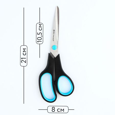 Ножницы канцелярские 21 см, PROвыбор «Градиент». Ножницы канцелярские торговой марки PRO Выбор предназначены для работы с бумагой и картоном . Имеют мягкие вставки на ручках, благодаря которым ножницы не будут скользить в руке. Преимущества: • Острые и прочные лезвия; • Нержавеющая сталь; • Удобная ручка; • Двухсторонняя заточка. <ul> <li> Длина, см: 21;</li> <li> Ширина, см: 8;</li> <li> Европодвес: да.</li> <li> Срок годности: не ограничен;</li> <li> Состав: металл, пластик.</li> </ul>