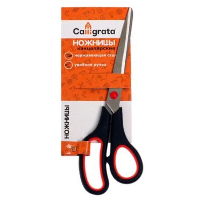 Ножницы канцелярские 23.5 см, ручки пластиковые с резиновыми вставками. <ul> <b> Ножницы для работы бумагой и картоном.</b> </ul> <li> Изготовлены из нержавеющей стали.</li> <li> Ручки — пластик с резиновыми вставками анатомической формы предотвращают скольжение пальцев.</li> <li> Имеют острые лезвия, что снижает нагрузку на руку.</li> <li> Благодаря продуманной форме ручек они удобны как для рукоделия, так и для творчества.</li> <li> Незаменимые универсальные ножницы для офиса и для дома.</li> <b> Внимание! Могут встречаться заломы на подложке, при сгибании плотного картона с нанесением, такие заломы неизбежность транспортировки</b>
