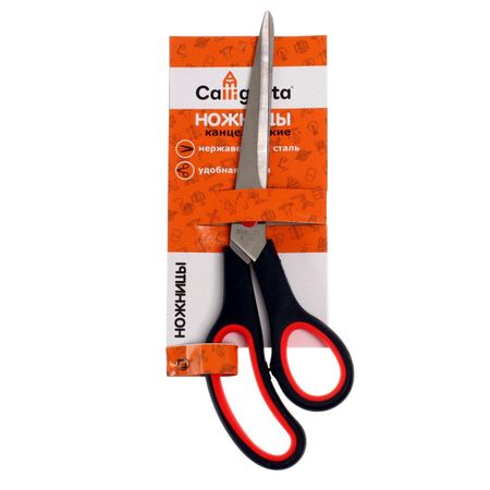 Ножницы канцелярские 25 см, ручки пластиковые с резиновыми вставками. <ul> <b> Ножницы для работы бумагой и картоном.</b> </ul> <li> Изготовлены из нержавеющей стали.</li> <li> Ручки — пластик с резиновыми вставками анатомической формы предотвращают скольжение пальцев.</li> <li> Имеют острые лезвия, что снижает нагрузку на руку.</li> <li> Благодаря продуманной форме ручек они удобны как для рукоделия, так и для творчества.</li> <li> Незаменимые универсальные ножницы для офиса и для дома.</li> <b> Внимание! Могут встречаться заломы на подложке, при сгибании плотного картона с нанесением, такие заломы неизбежность транспортировки</b>