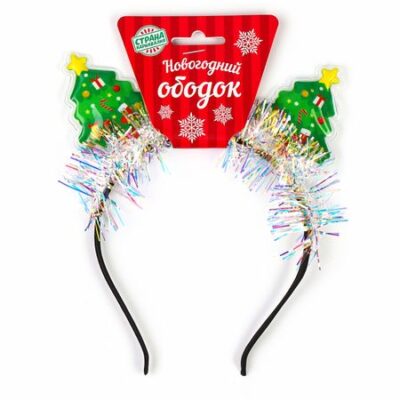 Ободок новогодний карнавальный «Ёлочки». Карнавальный ободок «Ёлочки» — идеальный аксессуар для создания праздничного настроения. Легкий и удобный головной убор подчеркнет ваш образ на новогоднем мероприятии. <b> Особенности</b> <ul> <li> Ободок универсального размера, он подходит детям и взрослым.</li> <li> Новогодний аксессуар выполнен из пластика и украшен мишурой.</li> </ul> <b> Идеи для использования</b> <ul> <li> Отличный выбор для новогодних корпоративов, домашних вечеринок и других праздничных мероприятий.</li> <li> Подходит в качестве дополнения к карнавальному костюму или самостоятельного аксессуара для создания веселой атмосферы.</li> <li> Можно использовать как оригинальный элемент на фотосессии или в качестве небольшого презента на праздник.</li> </ul> Этот ободок станет ярким дополнением вашего праздничного образа, придавая ему игривый и праздничный акцент. Используйте его, чтобы подчеркнуть атмосферу Нового года и подарить себе и окружающим положительные эмоции.