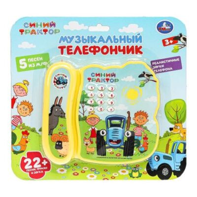 Обучающая игрушка СИНИЙ ТРАКТОР, Умка HT1397-R1. Музыкальный телефончик «Синий Трактор» ТМ «УМка» станет отличным подарком для маленьких поклонников мультсериала про веселый трактор:<br> — 22+ песни, фразы и звука <br> — 5 песен из м/ф: «Едет трактор», «По полям», «Разноцветные машинки», «Что ты делал, Синий Трактор?», «Экскаватор»<br> — реалистичные звуки телефона<br> — режим «Позвони другу»<br> — оригинальный дизайн с любимыми героями<br> <br> Маленькому любознайке непременно понравится этот яркий телефон с дизайном в стилистике популярного мультсериала. Малыш с удовольствием будет нажимать на кнопочки и слушать любимые песни и забавные звуки. Компактную игрушку удобно брать с собой.<br> <br> Игра с обучающим телефоном ТМ «УМка» способствует развитию:<br> — памяти<br> — слухового восприятие и музыкального слуха<br> — логического мышления<br> — тактильных навыков<br> — моторики<br> <br> Размер игрушки: 19 x 20,5 x 3,3 см. Материал: пластмасса.<br> Работает от 2-х батареек типа ААА (в комплекте).<br> Рекомендовано детям от 3-х лет.