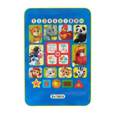 Обучающий музыкальный планшетик «Мои первые знания», работает от батареек. Музыкальный планшет «Мои первые знания» — это интерактивная игрушка для малышей, которая помогает осваивать цвета, формы, цифры и звуки в увлекательной игровой форме. <b> Особенности</b> <ul> <li> Ребенок познакомится с 10 животными, цифрами и геометрическими фигурами, запомнит их названия и научится различать.</li> <li> Планшет воспроизводит 10 звуков животных и 9 веселых песенок, развивая слуховое восприятие и память.</li> <li> Три режима игры — угадай чей звук, найди цифру, а также веселые задания помогут закрепить знания и потренировать логику.</li> <li> Легкий пластиковый корпус удобно держать в руках, а питание от батареек позволяет брать планшет с собой в дорогу.</li> </ul> <b> Развиваемся играя</b> Подходит детям от 3 лет. Игрушка не только развлекает, но и помогает развить мышление, внимательность и мелкую моторику. Отличный выбор для первых шагов в обучении!