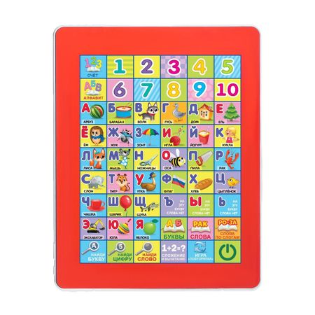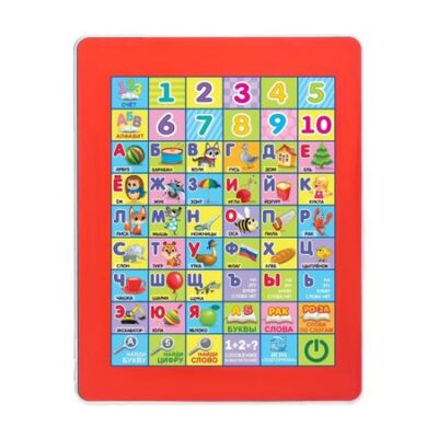 Обучающий планшет «Первые знания», со звуковыми эффектами. Обучающий планшет торговой марки Zabiaka — это портативный гаджет, с которым ребенок с удовольствием будет получать новые знания. Режимы планшета помогут малышу: <ul> <li> освоить азбуку и счет;</li> <li> запомнить ноты;</li> <li> научится выполнять простые арифметические действия.</li> </ul>