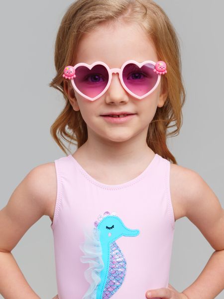 Солнцезащитные очки с фильтром Cat3 детские для девочки. Обхват головы 52-54 см. Ширина оправы — 135 мм, длина дужки -130 мм. С защитой UV400, которая может поглощать или отражать 90% ультрафиолетовых лучей с длиной волны менее 400 нанометров, эффективно блокируя все ультрафиолетовые лучи солнечного света. Очки с розовыми линзами хорошо подходят для условий меняющегося освещения (то свет, то тень). Солнцезащитные очки в форме сердца имеют трендовый дизайн. Два маленьких украшения в виде осьминога на оправе очень милые и привлекают внимание ребенка. Очки транспортируются в картонной коробке. В комплект входит фирменный текстильный чехол из микрофибры, с помощью которого легко ухаживать за изделием.