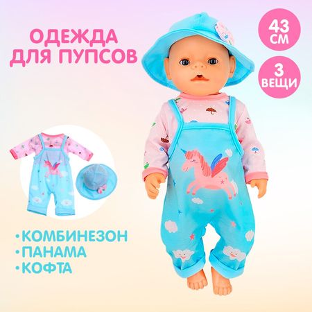 Одежда для пупса «Пегас» комбинезон, кофта, панама. Маленькие леди переодевают любимых пупсиков несколько раз в день. Ведь для разных жизненных ситуаций пупсу нужен соответствующий дресс-код. <b> Особенности костюма</b> <ul> <li> Подходит для пупсов ростом 43 см.</li> <li> Рекомендуем стирать вручную, утюжить при минимальном нагреве, не отбеливать и не сушить в машинке.</li> </ul> <b> Играем с пользой</b> Обновляя комплект своему пупсу, девочка осваивает социальные роли и модели поведения взрослых, тренирует фантазию и эстетический вкус.