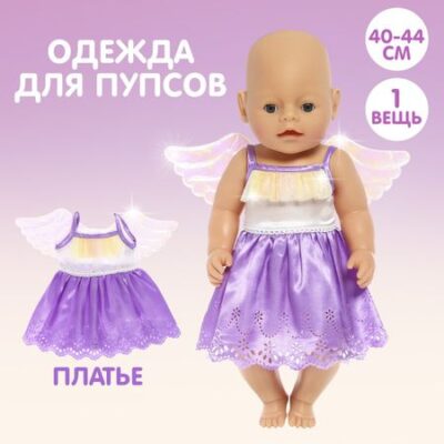 Одежда для пупса «Малыш» платье. Маленькие леди переодевают любимых пупсиков несколько раз в день. Ведь для разных жизненных ситуаций пупсу нужен соответствующий дресс-код. <b> Особенности костюма</b> <ul> <li> Подходит для пупсов ростом 40 — 44 см.</li> <li> Рекомендуем стирать вручную, утюжить при минимальном нагреве, не отбеливать и не сушить в машинке.</li> </ul> <b> Играем с пользой</b> Обновляя комплект своему пупсу, девочка осваивает социальные роли и модели поведения взрослых, тренирует фантазию и эстетический вкус.
