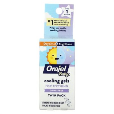 Orajel, Детские дневные и ночные охлаждающие гели для прорезывания зубов, для детей от 0 лет, 2 тюбика по 5,1 г (0,18 унции)