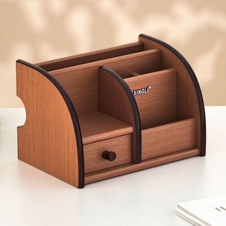 Органайзер 5 секций, 1 выдвижной ящик, серия Ясень шимо темный с кантом темным, 14×21 см. Кому не знаком творческий беспорядок, царящий практически на каждом офисном столе? Однако для делового человека, школьника или студента важным аспектом является систематизация документов и работ. Настольный органайзер поможет поддерживать порядок в рабочей зоне, хранить канцелярские принадлежности или другие мелочи и не потерять их. Разместите в специально отведенных секциях не только ручки и карандаши, но также кнопки, скрепки и клейкую ленту. Теперь все эти маленькие, вечно теряющиеся предметы будут аккуратно сложены на своем месте.