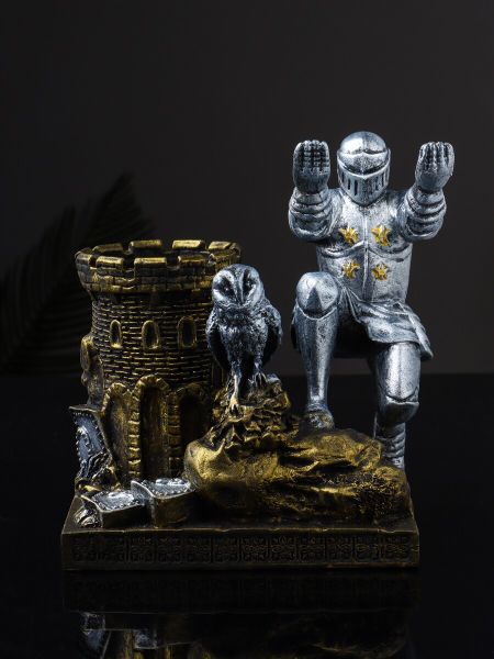 Органайзер для канцелярии «Рыцарь с совой», 15.5×14.5×9 см. Представляем вашему вниманию уникальный органайзер, который не только поможет организовать пространство, но и станет ярким акцентом в интерьере. Этот предмет изображает рыцаря с совой — символ мудрости и защиты, которые гармонично сочетаются в едином образе. Благодаря своим размерам (15.5×14.5×9 см) он легко разместится на рабочем столе, полке или в детской комнате, привнося порядок и уют. Изделие выполнено из высококачественного полистоуна, который славится своей прочностью и долговечностью. Разноцветное покрытие добавляет изделию особую выразительность: от детализированных доспехов рыцаря до мягких перьев совы. Каждая черта проработана с особым вниманием к деталям, что делает этот органайзер не просто функциональным предметом, а настоящим произведением искусства. <ul> <li> <strong> Символ мудрости и порядка:</strong> рыцарь с совой станет напоминанием о важности организованности и заботы о своем пространстве.</li> <li> <strong> Функциональность:</strong> компактные отделения позволяют хранить ручки, карандаши, скрепки и другие канцелярские принадлежности, избавляя стол от беспорядка.</li> <li> <strong> Качественные материалы:</strong> полистоун обеспечивает долговечность и устойчивость к внешним воздействиям, сохраняя первозданный вид изделия даже при ежедневном использовании.</li> <li> <strong> Универсальность:</strong> подходит как для домашнего офиса, так и для рабочего места в школе или детском саду, где он может стать источником вдохновения.</li> <li> <strong> Эмоциональный акцент:</strong> эта композиция не только помогает организовать пространство, но и радует глаз, создавая атмосферу творчества и уюта.</li> </ul> Органайзер «Рыцарь с совой» — это больше, чем просто место для хранения канцелярии. Он воплощает в себе идею порядка и гармонии, напоминая о важности структурированного подхода к делам. Позвольте этому очаровательному помощнику стать частью вашего повседневного пространства, добавляя нотку вдохновения и практичности в каждый день. Ведь именно такие мелочи делают нашу жизнь удобнее и приятнее.