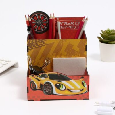 Органайзер для канцелярии «Только вперед!», 14,5 х 17,7 х 14 см. <b> Органайзер для канцелярии «Только вперед!», 14,5 х 17,7 х 14 см</b> Настольный органайзер для хранения канцелярии – универсальное изделие, которое поможет без лишних хлопот организовать пространство на рабочем столе. Отлично впишется в интерьер и позволит сделать вашу работу максимально продуктивной, ведь удобное рабочее место – залог успешной деятельности. А еще подобный органайзер станет отличным подарком для людей, которые ценят практичные презенты и любят порядок во всем.