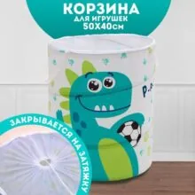 Корзина для хранения игрушек «Дино», 50 х 40 см, белая, зеленая.