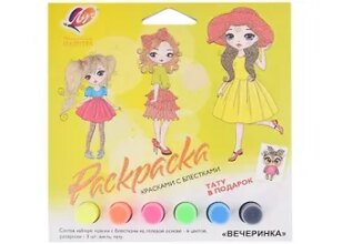 Наборы красок с блёстками с раскрасками в ассортименте: «
