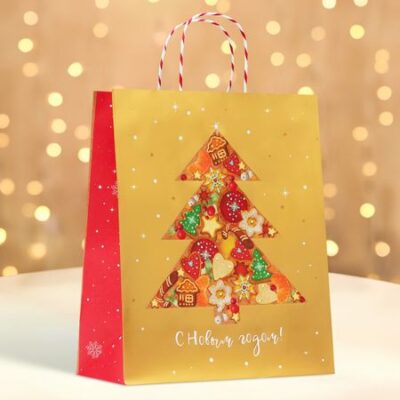 Пакет бумажный подарочный новогодний крафт «С новым годом» 26×32×12 см. <strong> Пакет новогодний подарочный</strong> — это яркий и красочный аксессуар, который поможет создать праздничное настроение и сделать подарок еще более запоминающимся. Пакет выполнен из качественных материалов, которые обеспечивают его прочность и долговечность. Он имеет яркий дизайн с новогодними мотивами, такими как снежинки, елки, Дед Мороз и другие символы Нового года. Пакет имеет удобную форму и размер, что позволяет легко поместить в него подарки различных размеров. Он также оснащен удобными ручками для переноски. Новогодний подарочный пакет — это отличный выбор для тех, кто хочет порадовать своих близких и друзей в этот волшебный праздник. Он добавит нотку радости и веселья в любой подарок!