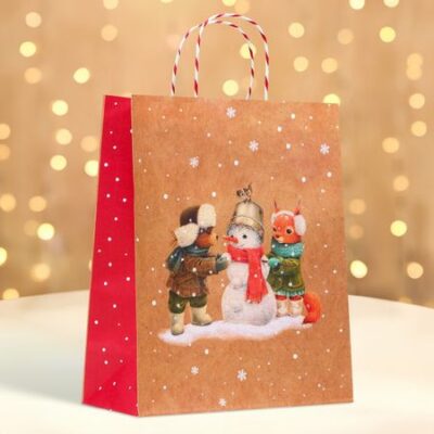 Пакет бумажный подарочный новогодний крафт «Снеговик» 18×22.3×10 см. <strong> Пакет новогодний подарочный</strong> — это яркий и красочный аксессуар, который поможет создать праздничное настроение и сделать подарок еще более запоминающимся. Пакет выполнен из качественных материалов, которые обеспечивают его прочность и долговечность. Он имеет яркий дизайн с новогодними мотивами, такими как снежинки, елки, Дед Мороз и другие символы Нового года. Пакет имеет удобную форму и размер, что позволяет легко поместить в него подарки различных размеров. Он также оснащен удобными ручками для переноски. Новогодний подарочный пакет — это отличный выбор для тех, кто хочет порадовать своих близких и друзей в этот волшебный праздник. Он добавит нотку радости и веселья в любой подарок!