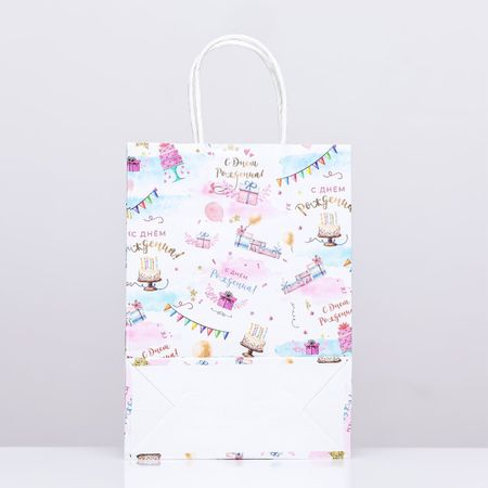 Пакет крафт «С Днем Рождения», 18×8×25 см. Праздничный крафтовый пакет — это идеальное дополнение к вашему особенному моменту! <strong> Основные характеристики:</strong> <ul> <li> Экологичность: Изготовлен из высококачественной крафт-бумаги, которая экологически чиста и биоразлагаема, что делает его превосходным выбором для тех, кто заботится о окружающей среде.</li> <li> Уникальный дизайн: Пакет обладает особым дизайном, который придаст вашему подарку или товару уникальный и неповторимый вид. Его крафтовая текстура добавляет природный и теплый акцент к любому празднику.</li> <li> Удобство: Пакет оснащен прочными ручками для удобной переноски, что делает его идеальным для подарочной упаковки.</li> </ul>
