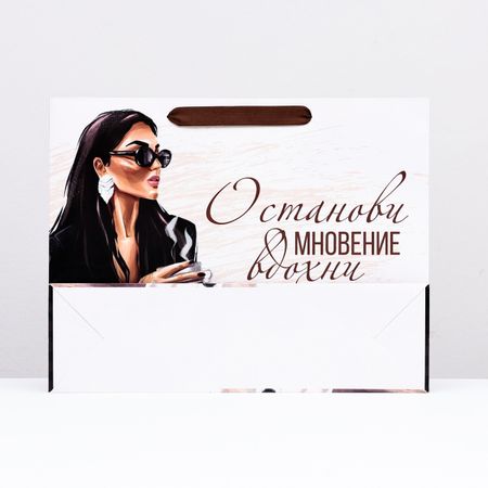 Пакет ламинированный «Останови мновение», 31×40×11.5 см. Стильный ламинированный пакет с ламинацией используют как упаковку для подарка. Благодаря своему оригинальному дизайну и привлекательному внешнему виду он создаст праздничное настроение получателю и не оставит его равнодушным. Пакет практически не подвергается влиянию влаги, способен выдерживать в несколько раз больший вес, чем пакеты без ламинации.
