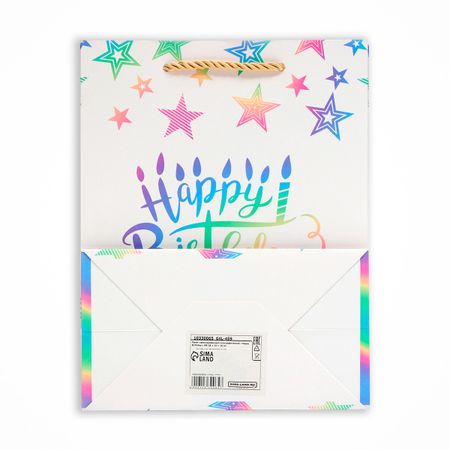 Пакет ламинированный голографический Happy Birthday, MS 18×23×10 см. <strong> Пакет ламинированный</strong> — идеальное решение для упаковки подарков на день рождения, юбилей или торжество. Он представляет собой стильный и функциональный аксессуар, который подчеркнет важность события и обеспечит сохранность презента. <strong> Основные характеристики:</strong> <ul> <li> Размер: 18 × 23 × 10 см</li> <li> Материал: ламинированная бумага, картон</li> </ul> <strong> Преимущества:</strong> <ul> <li> Удобство использования: пакет оснащен прочным картонным дном и ручкой шнур, что облегчает переноску подарка.</li> <li> Декор: яркий и красочный рисунок с тематикой праздника придает пакету праздничный вид.</li> <li> Премиальное качество: пакет изготовлен из высококачественных материалов, обеспечивающих долговечность и надежность.</li> </ul> Этот пакет станет прекрасным дополнением к любому подарку и создаст атмосферу праздника. Он подойдет как для взрослых, так и для детей, и может быть использован на различных торжествах, таких как юбилей, день рождения или просто в качестве упаковки для оригинального детского подарка.
