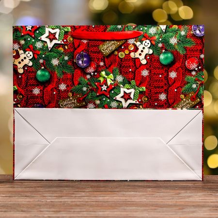 Пакет ламинированный горизонтальный «Вязанка»,49×40×19 см. Стильный новогодний пакет с ламинацией используют как упаковку для подарка. Благодаря своему оригинальному дизайну и привлекательному внешнему виду он создаст праздничное настроение получателю и не оставит его равнодушным. Пакет практически не подвергается влиянию влаги, способен выдерживать в несколько раз больший вес, чем пакеты без ламинации.