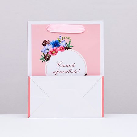 Пакет ламинированный вертикальный "Самой красивой, цветочки", 18×23×10 см. Стильный ламинированный пакет с ламинацией используют как упаковку для подарка. Благодаря своему оригинальному дизайну и привлекательному внешнему виду он создаст праздничное настроение получателю и не оставит его равнодушным. Пакет практически не подвергается влиянию влаги, способен выдерживать в несколько раз больший вес, чем пакеты без ламинации.