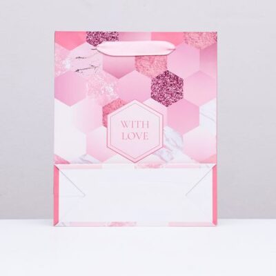 Пакет ламинированный вертикальный «С любовью», 21×25×8 см. Стильный ламинированный пакет с ламинацией используют как упаковку для подарка. Благодаря своему оригинальному дизайну и привлекательному внешнему виду он создаст праздничное настроение получателю и не оставит его равнодушным. Пакет практически не подвергается влиянию влаги, способен выдерживать в несколько раз больший вес, чем пакеты без ламинации.