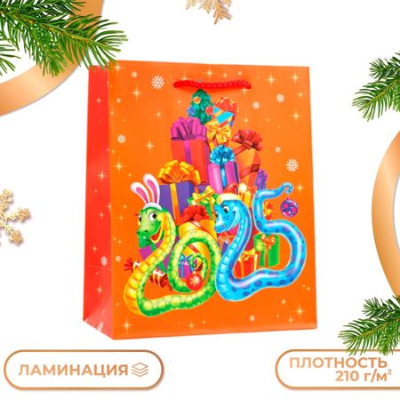 Пакет новогодний подарочный «Змейки с подарками Символ года», упаковка, 18×22.3×10 см. <strong> Пакет новогодний подарочный</strong> — это яркий и красочный аксессуар, который поможет создать праздничное настроение и сделать подарок еще более запоминающимся. Пакет выполнен из качественных материалов, которые обеспечивают его прочность и долговечность. Он имеет яркий дизайн с новогодними мотивами, такими как снежинки, елки, Дед Мороз и другие символы Нового года. Пакет имеет удобную форму и размер, что позволяет легко поместить в него подарки различных размеров. Он также оснащен удобными ручками для переноски. Новогодний подарочный пакет — это отличный выбор для тех, кто хочет порадовать своих близких и друзей в этот волшебный праздник. Он добавит нотку радости и веселья в любой подарок! Применение