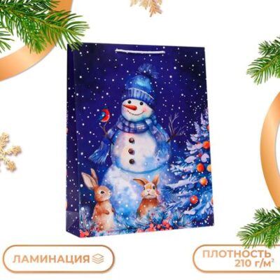 Пакет подарочный «Гордый снеговик», 33×42.5×10 см. <strong> Подарочный новогодний пакет</strong> — это стильное и практичное решение для упаковки подарков к Новому году. Он выполнен из высококачественного материала, который обеспечивает надежную защиту содержимого от внешних воздействий. Пакет имеет плотную структуру и приятную на ощупь поверхность, что делает его удобным в использовании. Он украшен яркими новогодними узорами и изображениями, которые создают атмосферу праздника и волшебства. Подарочный новогодний пакет имеет оптимальные размеры, позволяющие упаковать различные предметы, от небольших сувениров до крупных подарков. Он также может быть использован для хранения и транспортировки продуктов питания, например сладких подарков под елку, так как материал, из которого он изготовлен, является безопасным для контакта с пищевыми продуктами. Этот пакет — отличный выбор для тех, кто ценит качество и стиль. Он станет прекрасным дополнением к любому подарку и создаст праздничное настроение.
