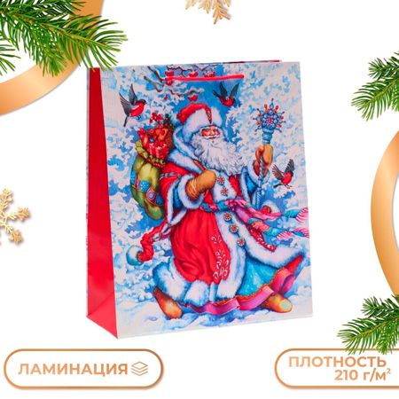 Пакет подарочный «Дедушка Мороз», 26×32×12 см. Новогодний подарочный пакет с ярким, красочным рисунком создаст праздничное настроение. <br> Упаковка защитит подарок при его транспортировке и сохранит интригу до самого момента вручения. <br> Пакет прямоугольной формы изготовлен из ламинированной бумаги. <br> Для удобства переноски предусмотрены две ручки. <br> Универсальный, прочный и яркий пакет для упаковки любых товаров. <br> <br> <br>