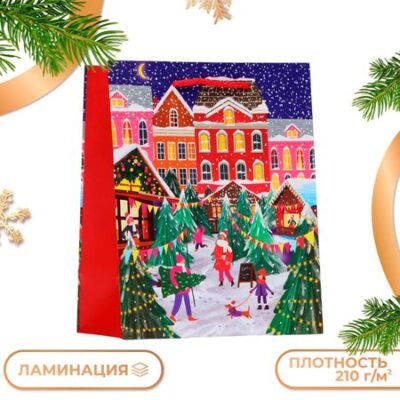 Пакет подарочный «Праздник в городе», 18×22.3×10 см. <strong> Пакет новогодний подарочный</strong> — идеальное решение для упаковки подарков на новый год и рождества. Он представляет собой стильный и функциональный аксессуар, который подчеркнет важность события и обеспечит сохранность презента. <strong> Преимущества:</strong> <ul> <li> Удобство использования: пакет оснащен прочным картонным дном и ручкой шнур, что облегчает переноску подарка.</li> <li> Декор: яркий и красочный рисунок с тематикой праздника придает пакету праздничный вид.</li> <li> Премиальное качество: пакет изготовлен из высококачественных материалов, обеспечивающих долговечность и надежность.</li> <li> Этот пакет станет прекрасным дополнением к любому подарку и создаст атмосферу праздника.</li> </ul> Он подойдет как для взрослых, так и для детей, и может быть использован на Новый год и рождество или просто в качестве упаковки для оригинального детского подарка.