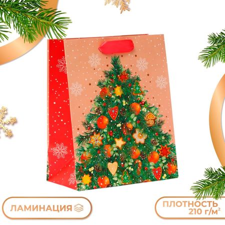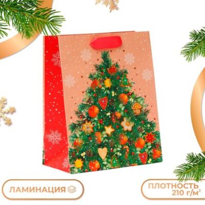 Пакет подарочный «Красивая елка», 18×22.3×10 см. <strong> Подарочный новогодний пакет</strong> — это стильное и практичное решение для упаковки подарков к Новому году. Он выполнен из высококачественного материала, который обеспечивает надежную защиту содержимого от внешних воздействий. Пакет имеет плотную структуру и приятную на ощупь поверхность, что делает его удобным в использовании. Он украшен яркими новогодними узорами и изображениями, которые создают атмосферу праздника и волшебства. Подарочный новогодний пакет имеет оптимальные размеры, позволяющие упаковать различные предметы, от небольших сувениров до крупных подарков. Он также может быть использован для хранения и транспортировки продуктов питания, например сладких подарков под елку, так как материал, из которого он изготовлен, является безопасным для контакта с пищевыми продуктами. Этот пакет — отличный выбор для тех, кто ценит качество и стиль. Он станет прекрасным дополнением к любому подарку и создаст праздничное настроение.