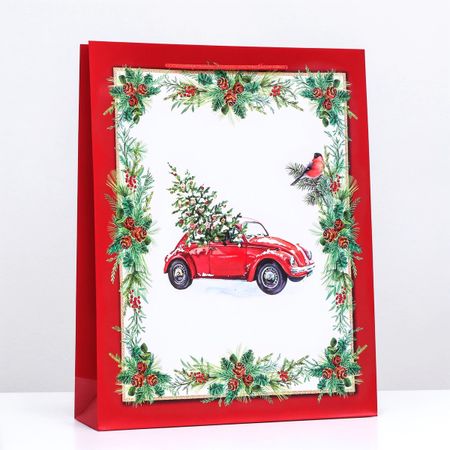 Пакет подарочный "Праздничная машинка", 33 х 42,5 х 10 см.. Наши подарочные пакеты — это прекрасный выбор для тех, кто ценит красоту и заботу о природе. Упаковывайте ваши подарки в эти стильные, праздничные пакеты, окружая близких вниманием и заботой. С оригинальными принтами, выделитесь среди прочих. Прочные, с высокой устойчивостью и надежными ручками, наши подарочные пакеты подчеркнут особенность вашего подарка, сделав его запоминающимся.