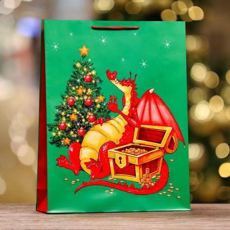 Пакет подарочный «Дракон» , 33×42.5×10 см. Наши подарочные пакеты — это прекрасный выбор для тех, кто ценит красоту и заботу о природе. Упаковывайте ваши подарки в эти стильные, праздничные пакеты, окружая близких вниманием и заботой. С оригинальными принтами, выделитесь среди прочих. Прочные, с высокой устойчивостью и надежными ручками, наши подарочные пакеты подчеркнут особенность вашего подарка, сделав его запоминающимся.