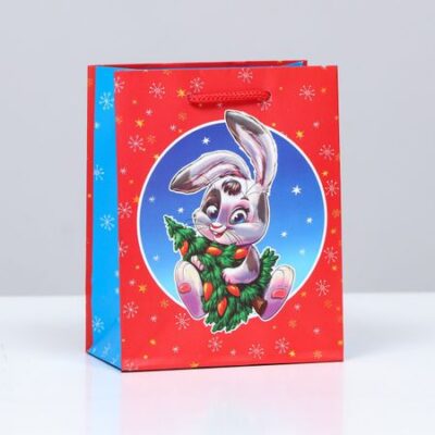 Пакет подарочный "Зайчик с елкой" , 11,5 х 14,5 х 6,5 см.. Новогодний подарочный пакет с ярким, красочным рисунком создаст праздничное настроение. <br> Упаковка защитит подарок при его транспортировке и сохранит интригу до самого момента вручения. <br> Пакет прямоугольной формы изготовлен из ламинированной бумаги. <br> Для удобства переноски предусмотрены две ручки. <br> Универсальный, прочный и яркий пакет для упаковки любых товаров. <br> <br> <br>