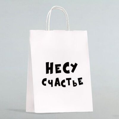 Пакет подарочный «Несу счастье », 24×14×28 см. <em> Счастье в красивой упаковке!</em> <strong> Крафт-пакет «Несу счастье» (24×28 см)</strong> — стильная упаковка, которая превращает обычный подарок в теплое поздравление. Лаконичный дизайн с трогательной надписью создает праздничное настроение. <ul> <li> <strong> Готовый позитив:</strong> Надпись «Несу счастье» заменяет открытку. Не требует дополнительных подписей — ваши эмоции уже переданы.</li> <li> <strong> Вместительный формат:</strong> Удобные размеры и широкое дно позволяют упаковать подарки до 3 кг. Боковые складки добавляют объем.</li> <li> <strong> Эко-стиль:</strong> Белый крафт с крученым шпагатом выглядит современно и естественно. Подходит для любых возрастных категорий.</li> <li> <strong> Универсальное применение:</strong> Идеален для дней рождения, небольших сюрпризов или знаков внимания. Двухсторонний дизайн выглядит аккуратно со всех сторон.</li> </ul> <strong> Почему стоит выбрать:</strong> Этот пакет — простой способ сделать подарок душевнее. Прочная крафт-бумага сохраняет содержимое, а лаконичный дизайн подчеркивает ваше внимание. Просто положите подарок внутрь — и он сразу приобретет особое значение!