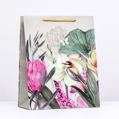 Пакет подарочный "Птичка в цветах", 26 х 32 х 12 см. Подарки не всегда должны быть связаны с особыми событиями. Подарив их без всяких поводов, вы придадите этому моменту особое очарование! Даже самый простой подарок, сувенир или другие милые мелочи, упакованные в наши уникальные подарочные пакеты, останутся в памяти получателя на долгие годы. <strong> Преимущества наших подарочных пакетов:</strong> <ul> <li> Изысканный дизайн, который приятно восхищает глаз.</li> <li> Прочная и надежная конструкция с укрепленным дном из картона.</li> <li> Удобные ручки для комфортного переноса.</li> </ul> Сделайте ваш подарок особенным уже с момента его представления с помощью наших элегантных подарочных пакетов.