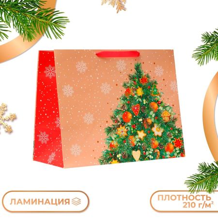 Пакет подарочный «Большая Ёлка», 50×40×25 см. <strong> Подарочный новогодний пакет</strong> — это стильное и практичное решение для упаковки подарков к Новому году. Он выполнен из высококачественного материала, который обеспечивает надежную защиту содержимого от внешних воздействий. Пакет имеет плотную структуру и приятную на ощупь поверхность, что делает его удобным в использовании. Он украшен яркими новогодними узорами и изображениями, которые создают атмосферу праздника и волшебства. Подарочный новогодний пакет имеет оптимальные размеры, позволяющие упаковать различные предметы, от небольших сувениров до крупных подарков. Он также может быть использован для хранения и транспортировки продуктов питания, например сладких подарков под елку, так как материал, из которого он изготовлен, является безопасным для контакта с пищевыми продуктами. Этот пакет — отличный выбор для тех, кто ценит качество и стиль. Он станет прекрасным дополнением к любому подарку и создаст праздничное настроение.