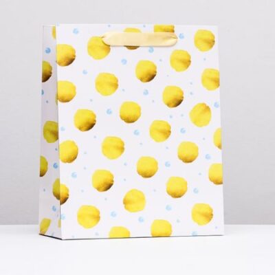 Пакет подарочный ламинированный «Горох», 26×32×12 см. Стильный ламинированный пакет с ламинацией используют как упаковку для подарка. Благодаря своему оригинальному дизайну и привлекательному внешнему виду он создаст праздничное настроение получателю и не оставит его равнодушным. Пакет практически не подвергается влиянию влаги, способен выдерживать в несколько раз больший вес, чем пакеты без ламинации.