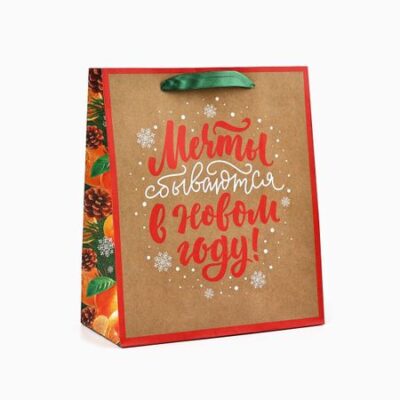 Главная » Товары для детей Пакет подарочный новогодний крафтовый Просмотров 4 Пакет подарочный новогодний крафтовый «Мечты сбываются», ML 23 х 27 х 11.5 см. Дарите Счастье