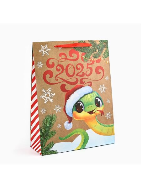 Главная » Товары для детей Пакет подарочный новогодний крафтовый Просмотров 6 Пакет подарочный новогодний крафтовый «Змея 2025», L 31 х 40 х 11.5 см. Дарите Счастье