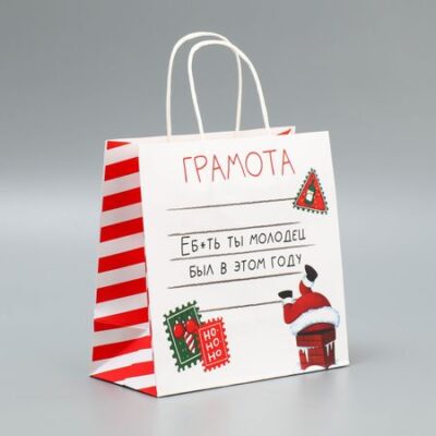 Главная » Товары для детей Пакет подарочный новогодний крафтовый Просмотров 3 Пакет подарочный новогодний крафтовый «Молодец», 22 х 22 х 11 см. Дарите Счастье