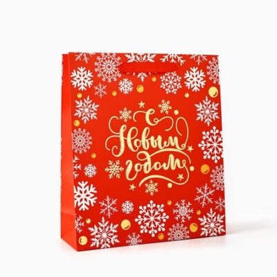Главная » Товары для детей Пакет подарочный новогодний ламинированный Просмотров 5 Пакет подарочный новогодний ламинированный «Золотые снежинки», тиснение, M 30 х 26 х 9 см. Дарите Счастье