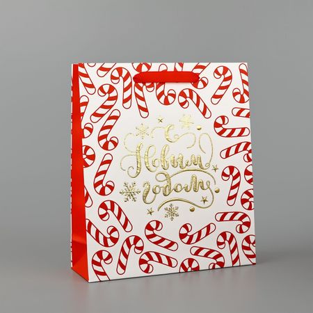 Главная » Товары для детей Пакет подарочный новогодний ламинированный Просмотров 4 Пакет подарочный новогодний ламинированный «Новогодние леденцы», тиснение, M 30 х 26 х 9 см. Дарите Счастье