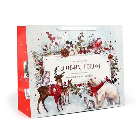Главная » Товары для детей Пакет подарочный новогодний ламинированный Просмотров 3 Пакет подарочный новогодний ламинированный «Снежняя поляна», XL 49 х 40 х 19 см. Дарите Счастье
