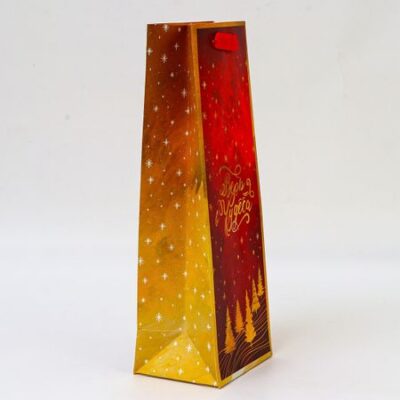 Пакет подарочный новогодний под бутылку «Верь в чудеса», 13×36×10 см. <strong> Подарочный пакет новогодний</strong> — идеальный выбор для упаковки бутылки. <ul> <li> Размеры пакета составляют 12 х 36 х 8,5 см, что позволяет удобно разместить внутри бутылку и сохранить ее целостность.</li> <li> Дизайн пакета выполнен в новогодней тематике с использованием ярких и праздничных узоров, изображений символов Нового года и блестящих акцентов. Это создает неповторимую атмосферу праздника и дарит радость получателю подарка.</li> <li> Пакет изготовлен из прочного и качественного материала, который обеспечивает надежную защиту бутылки от повреждений и пролития жидкости. Дно пакета дополнительно укреплено, что гарантирует целостность подарка даже при транспортировке.</li> <li> Ручки пакета имеют удобную конструкцию, позволяющую выдерживать значительный вес бутылки. Благодаря этому пакет можно легко носить в руках или повесить на плечо.</li> </ul> Подарочный пакет станет прекрасным дополнением к любому новогоднему подарку и сделает его еще более особенным и запоминающимся.